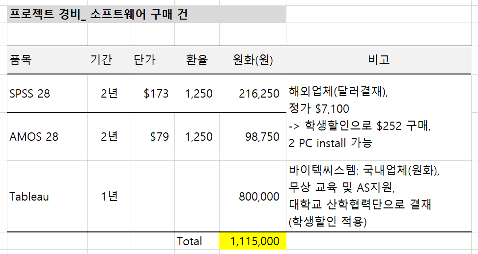 SPSS, AMOS, 그리고 Tableau 소프트웨어입니다. 흐뭇하네요.