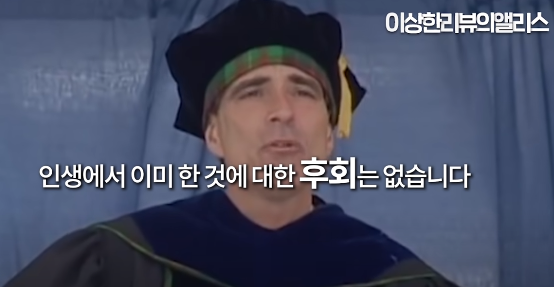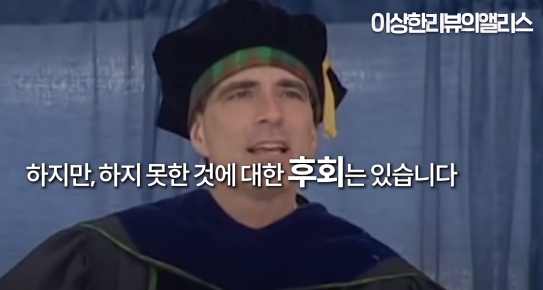 인생에서 이미 한 것에 대한 후회는 없습니다.죽기 전에 말입니다.하지만, 하지 못한 것에 대한 후회는 있습니다.저는 정말 많은 멍청한 행동들을 했습니다.제가 한 모든 실수, 어리숙한 행동에후회가 없습니다.그리고 부꾸러웠던 순간까지중요한 것이 아니었습니다.중요한 것은제 삶을 돌아봤을 때멋진 일들을 놓치지 않고 해봤다는 것입니다.저는 여기서 위안을 얻습니다.
